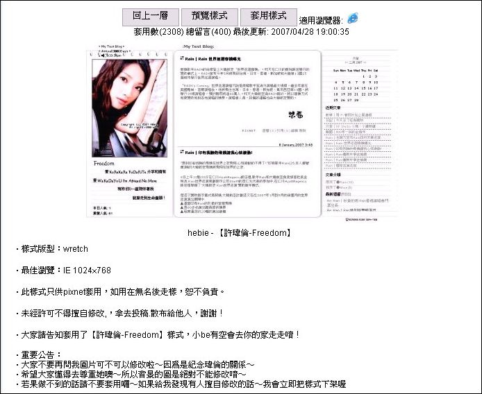 如果心血來潮手癢的話可能又忍不住設計新樣式啦,但是..可能只分享給我認識的網友吧!又或者只會做給我指定的網友囉,第一個我想..應該是我的麻吉[N]eomi啦,哇哈哈!
