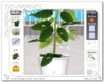 第十三天.高79cm,又是長高3cm = =" 但卻長出了果實喔 @@ 澆水、除蟲。